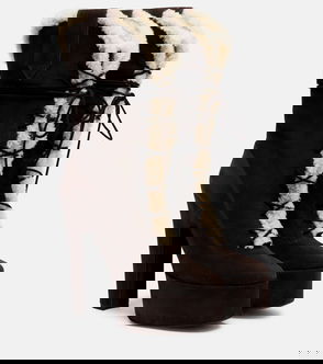 Make a statement in the Miralone knee-high boots from Manolo Blahnik. The pair is crafted from ruffled tiers of suede and sits atop 90mm curved heels.