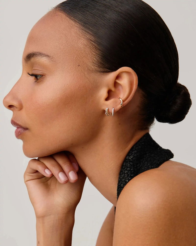 An evolution of our classic molten design, elevated in 14ct solid gold. This sculptural ear cuff is perfect for everyday wear. Simply cuff it on your ear and slide from the bottom up for the perfect fit and instant ear stack.