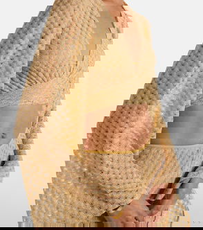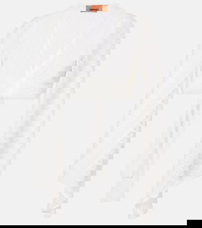 This top from Missoni showcases a shiny lamé construction, presented in an open-knit pattern. The design features a self-tie halterneck silhouette and V-cut hem for a flattering fit.