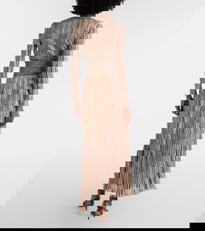 Exude glamour in this lamé gown from Missoni. The design is knitted to a floor-length silhouette with a V-neckline and adorned with dazzling sequin embellishments.