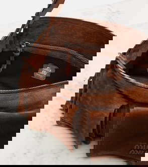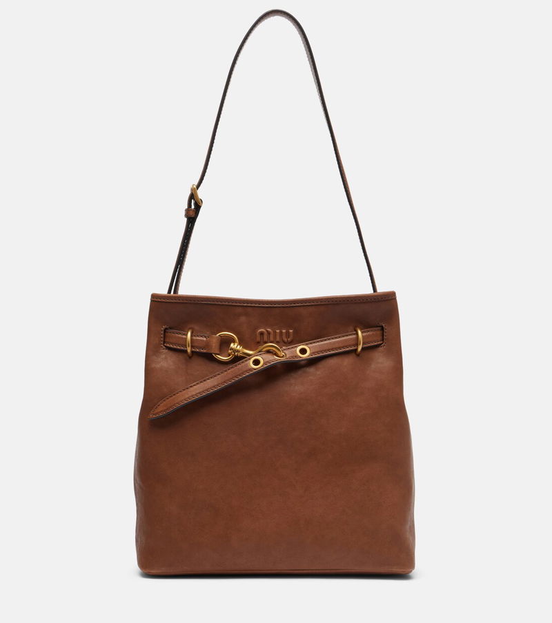 Uninhibited and deliberately subversive: these are the hallmarks of Miuccia Prada’s Miu Miu. The Aventure bucket bag is crafted from supple leather and boasts gold-toned hardware and the house's signature embossed logo on the front.