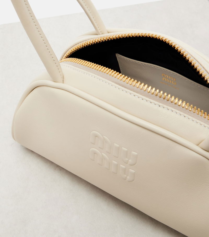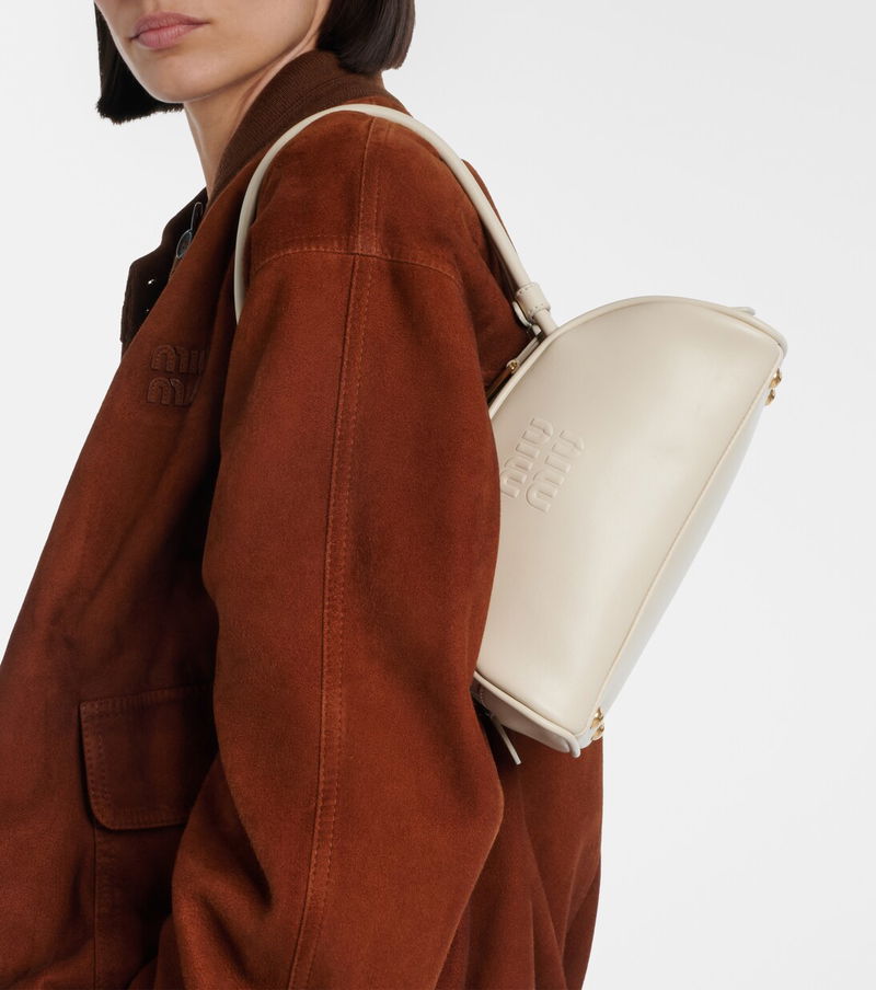 Uninhibited and deliberately subversive: these are the hallmarks of Miuccia Prada’s Miu Miu. Made from smooth leather, the Beau Small shoulder bag features a bowling-inspired, rounded silhouette and embossed logo detailing on the front.