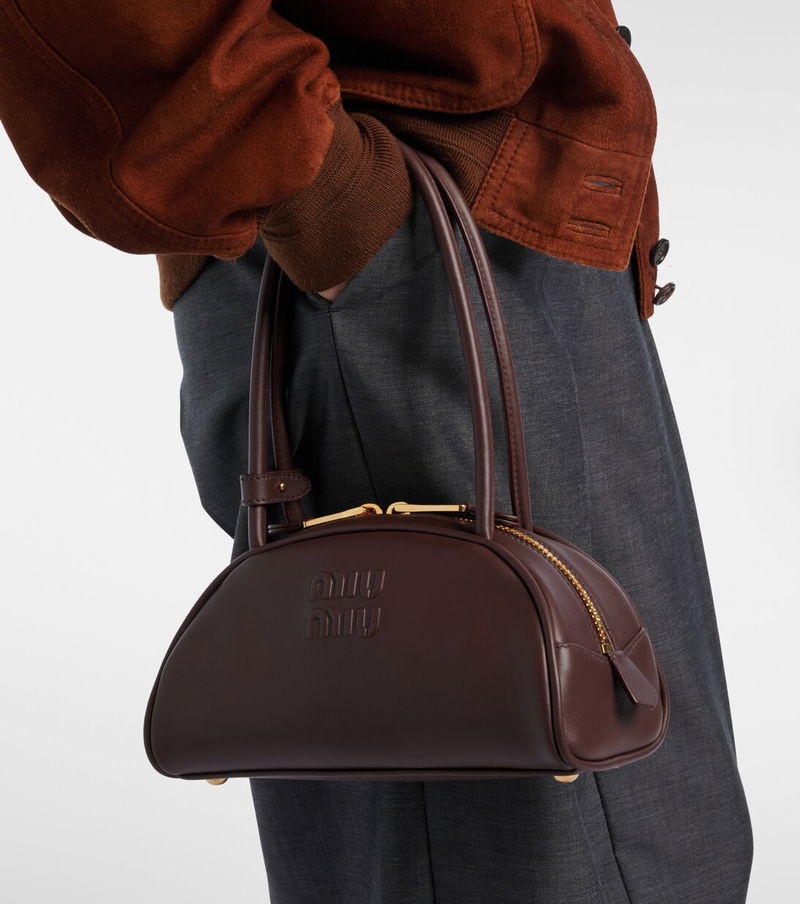 Uninhibited and deliberately subversive: these are the hallmarks of Miuccia Prada’s Miu Miu. Made from smooth leather, the Beau Small bowling bag features a rounded silhouette and an embossed logo on the front.