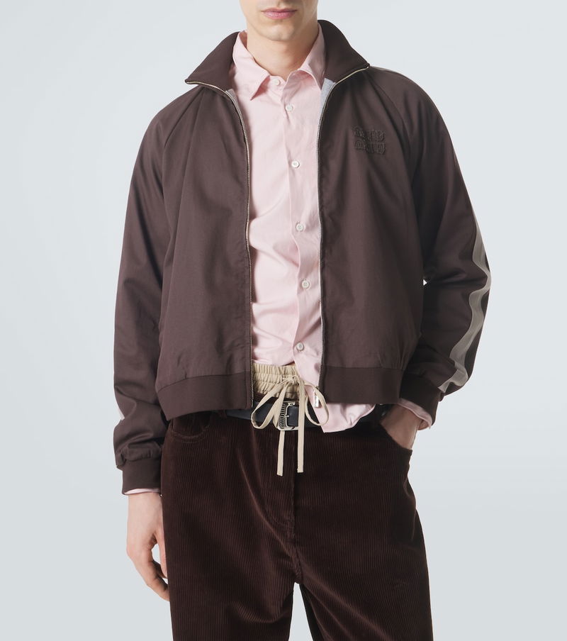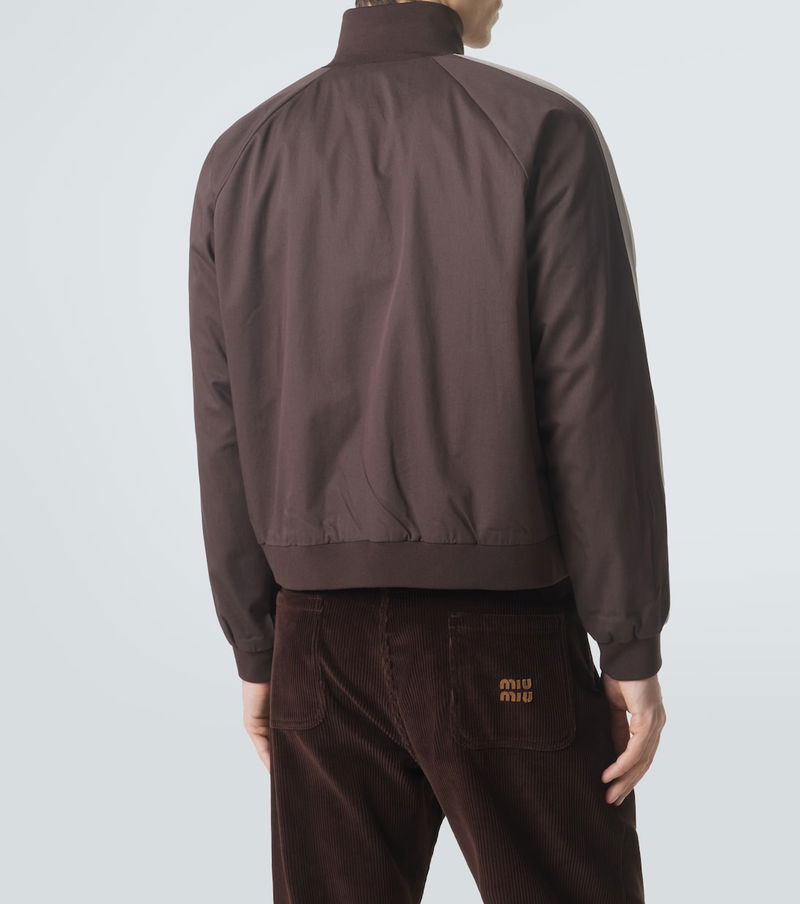 Uninhibited and deliberately subversive: these are the hallmarks of Miuccia Prada’s Miu Miu. Finished with track-inspired stripes at the raglan sleeves, this bomber jacket is crafted from pure cotton twill.