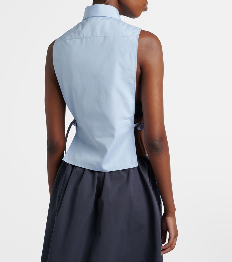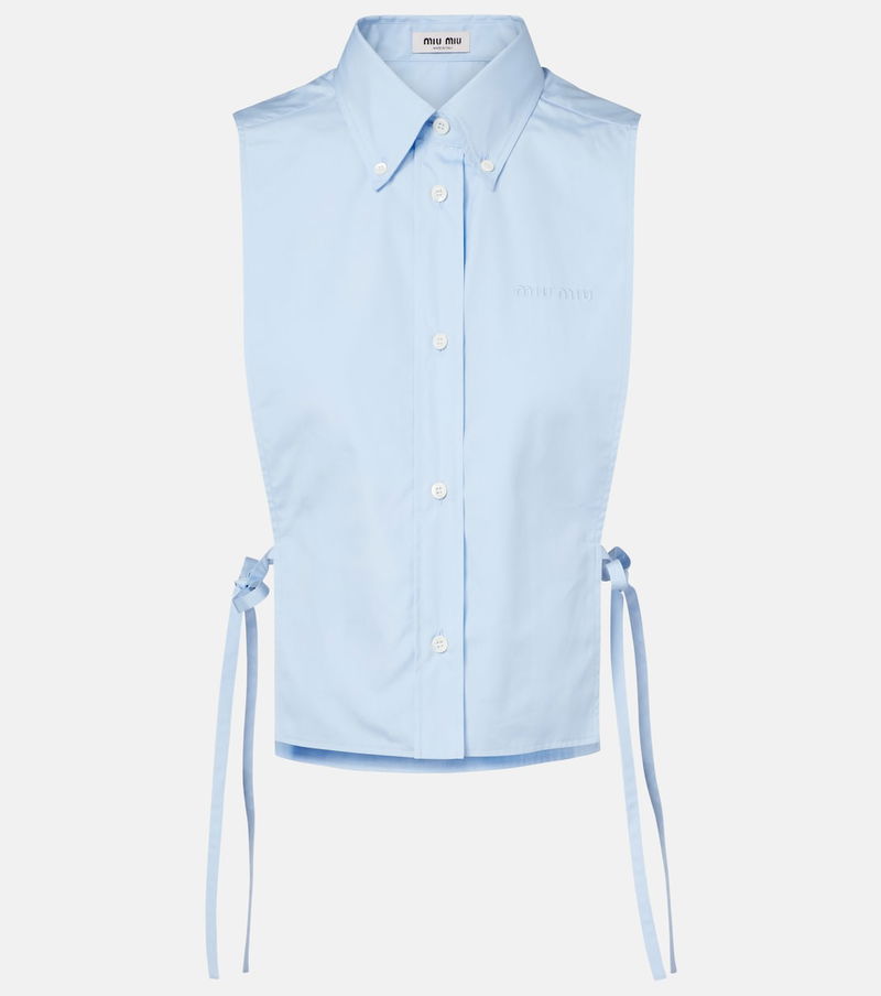 Uninhibited and deliberately subversive: these are the hallmarks of Miuccia Prada’s Miu Miu. Made from crisp cotton poplin, this cropped shirt is cut on the sides and finished with a buttoned front and self-ties.