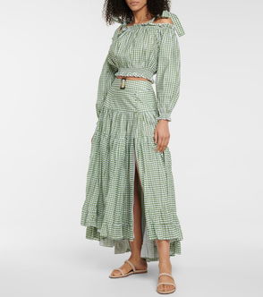 This gingham blouse from Miu Miu revives '90s styles for a modern audience. It's made from deliberately crinkled cotton with ruffle trims and a cropped hemline.