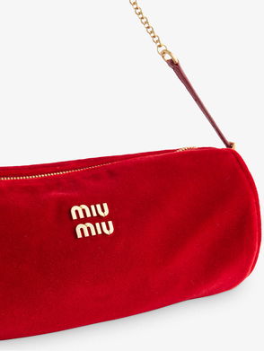Uninhibited and deliberately subversive: these are the hallmarks of Miuccia Prada’s Miu Miu. This hair clip is made from velvet to a bow-design with logo lettering.