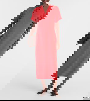 This midi dress from Miu Miu exudes romantic charm with its self-tie ribbon at the neckline. In a fluid and slightly flared length, this style comes in a cream colorway.