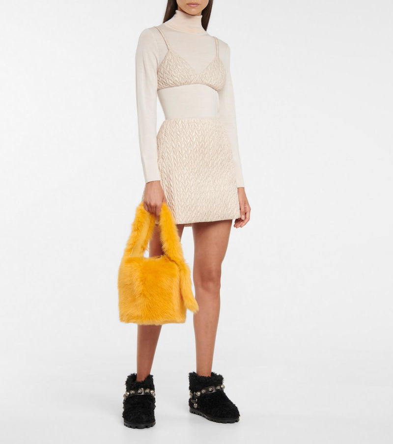 In exuberant orange shearling, this shoulder bag from Miu Miu is the perfect companion for special outings. Lined in suede, its medium-sized body comes with a pouch that you can detach for easy access to your smallest essentials.