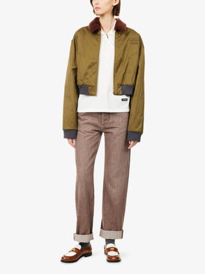 Uninhibited and deliberately subversive: these are the hallmarks of Miuccia Prada’s Miu Miu. Showcasing the brand's dedication to exceptional craft, this bomber jacket is made from waxed suede and comes in a slightly oversized silhouette complete with the brand's logo.