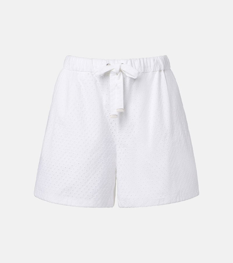 Coveted for high-performance outerwear, Moncler expands its collections with elevated everyday staples. These cotton shorts feature a charming broderie anglaise finish and an adjustable waist with elegant self-ties.