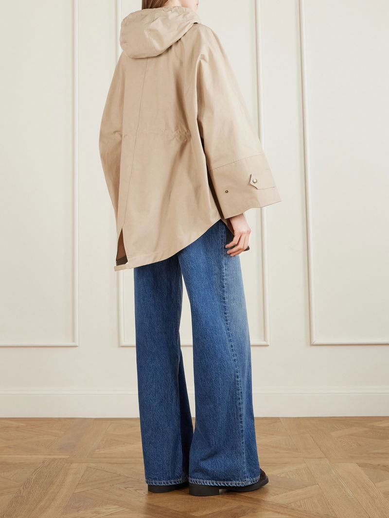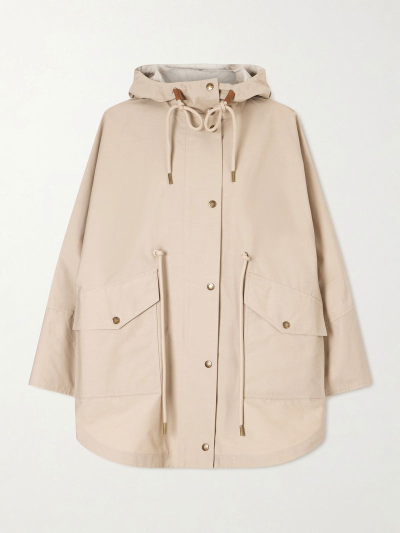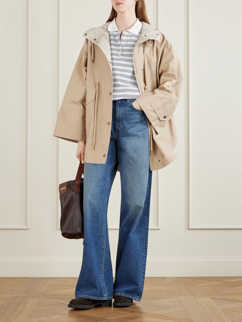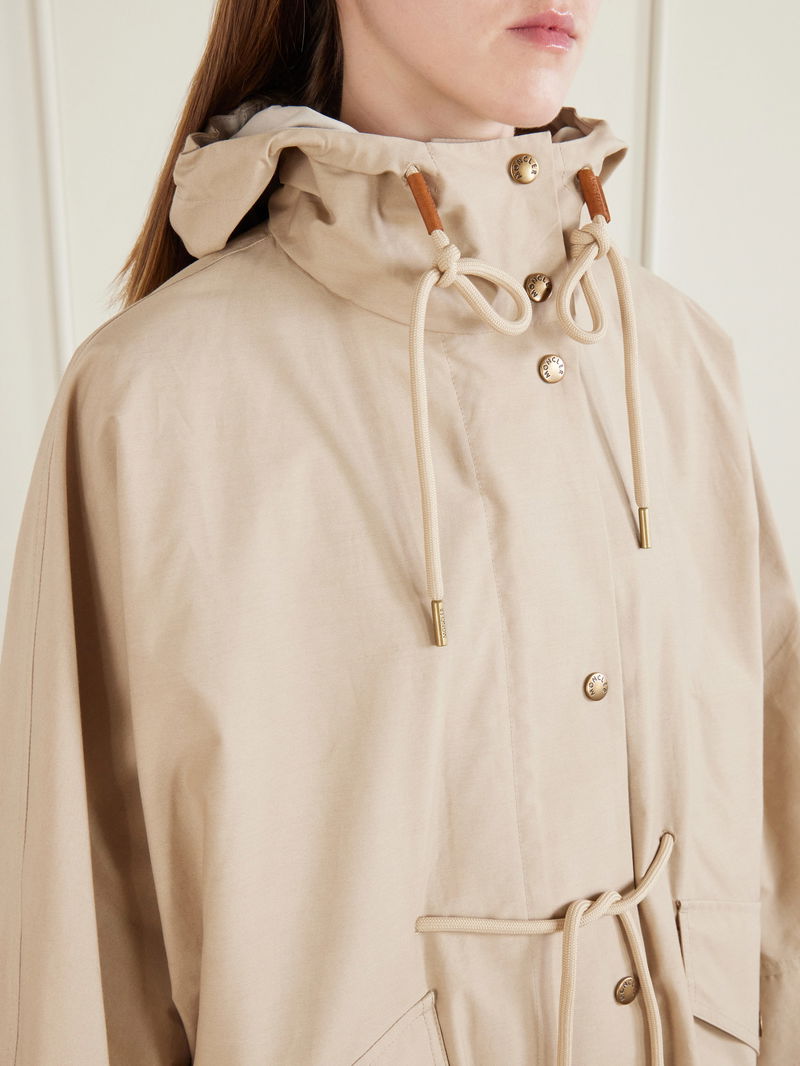 Moncler offers a refined take on classic raincoat styles. Made from cotton-blend shell, the 'Brunnera' jacket has a cinched waist fastened with ties and the logo patch appliquéd at the sleeve.