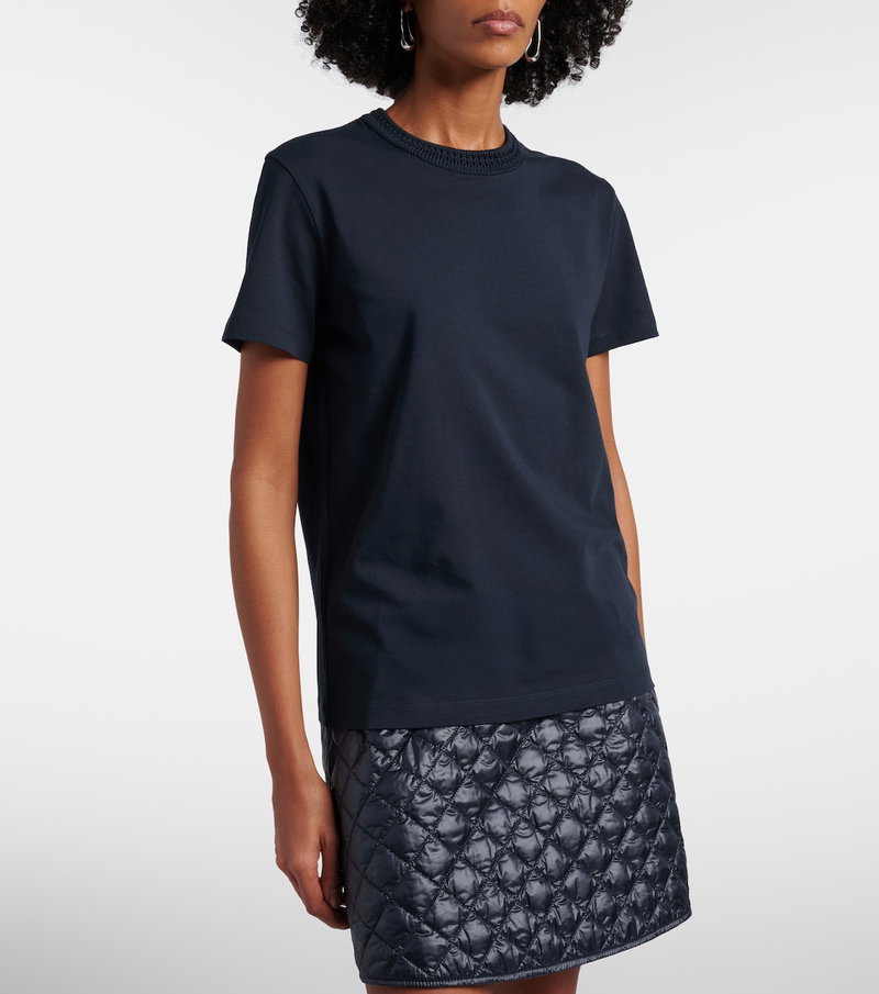 From extreme sports to day-to-day city living, Moncler covers all the bases. This T-shirt is crafted from cotton jersey and features a crochet collar.