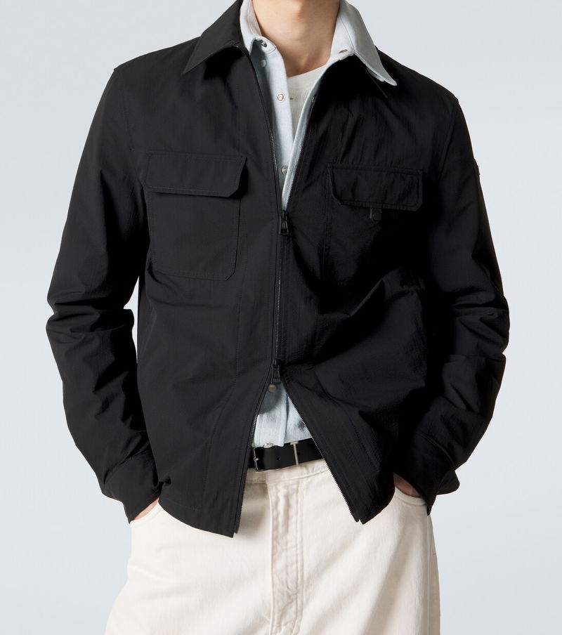 Crafted from lightweight, airy seersucker fabric, this overshirt features a two-way zipped front, myriad pockets, and logo detail at the sleeve.