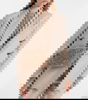 Bring a utilitarian element to evening looks with this shearling clutch from Moncler. The accessory is designed with a zipped top, drawstring sides, and a detachable shoulder strap.