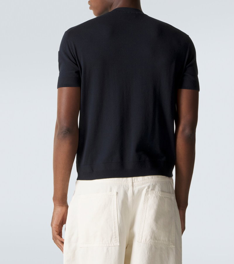 This T-shirt from Moncler is knitted from a soft, lightweight blend of silk and cotton. The crewneck design is complemented by a tonal logo patch on one sleeve and ribbed detailing along the hem and cuffs.