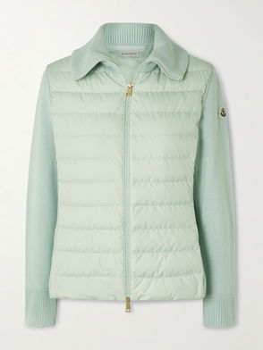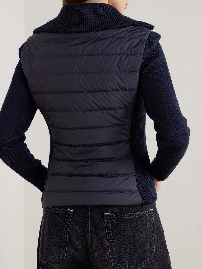 Wool And Padded Quilted Shell Down Cardigan