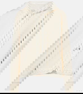 Closure: two-way zipped front. Pockets: side slit pockets. Drawstring collar.