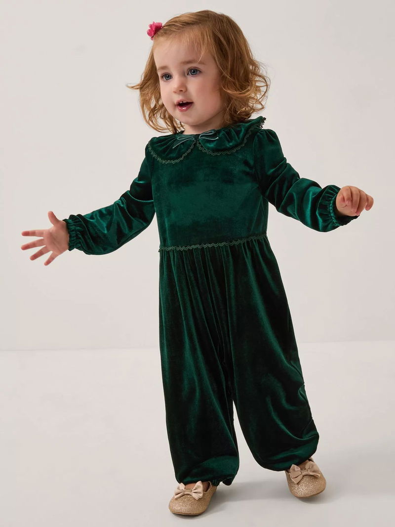 Baby Larisa Velvet Romper, Green