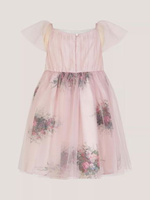 They'll love spinning in this dress, designed with a tulle-topped skirt and waterfall bow to the front. Featuring a sleeveless bodice and flared skirt, this dress secures with a button fastening on the reverse.