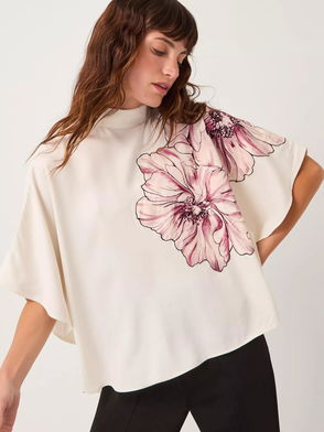 Neutrals, always. A simple statement for your capsule wardrobe, this top is built with capped sleeves, a crisp finish to the fabric, and bubble hem. Pop, pop!