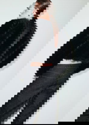 A cosy piece with its eye-catching faux fur, this jacket from Monsoon falls to a regular length.
