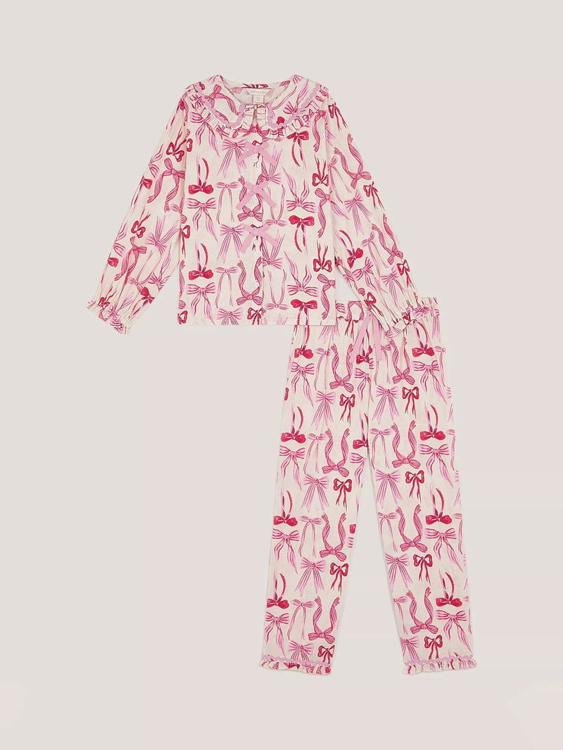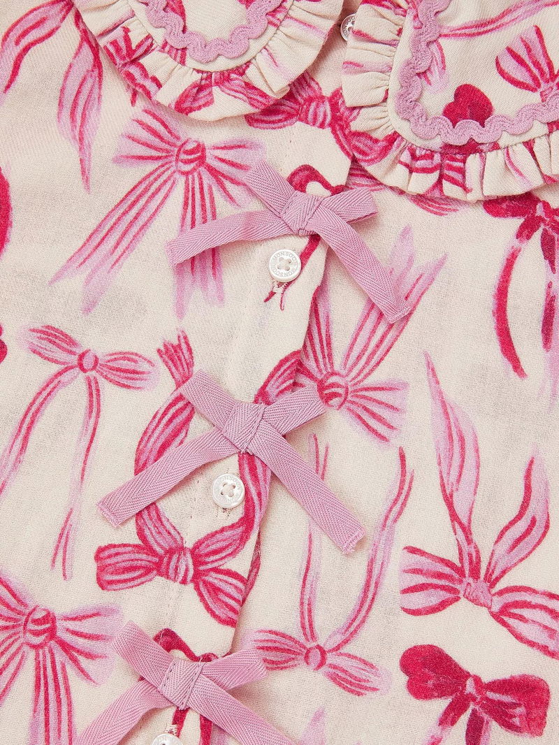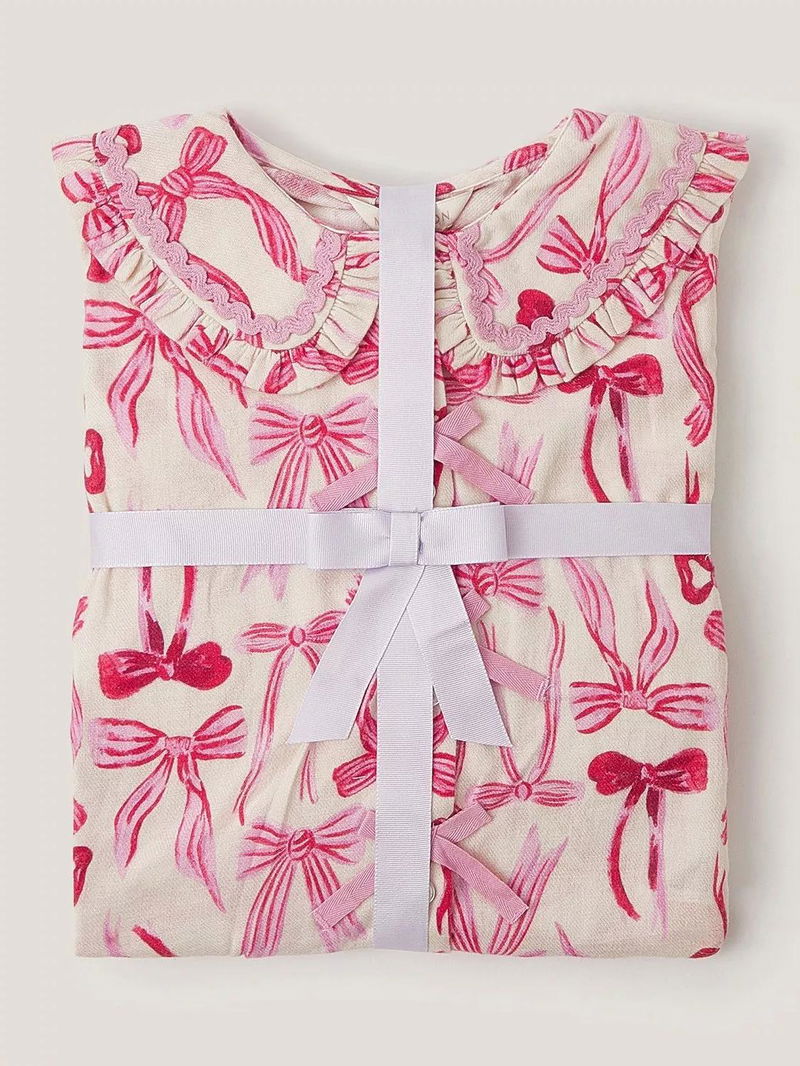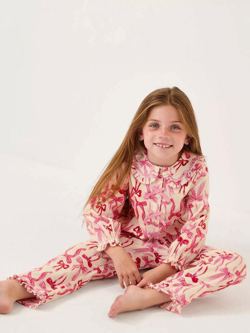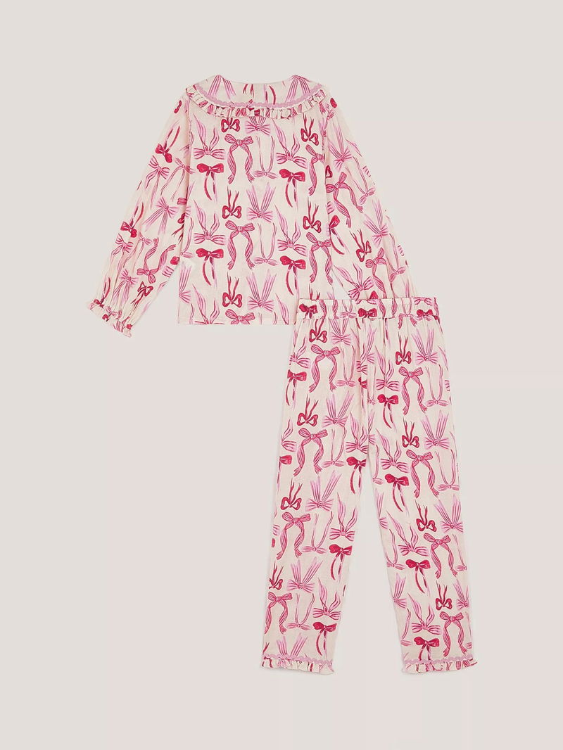 Kids' Cotton Bow Print Pyjama Set, Cream