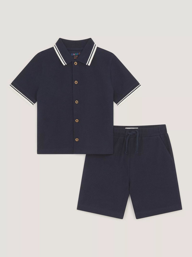 Kids' Cotton Jersey Polo Short & Shorts Set, Navy