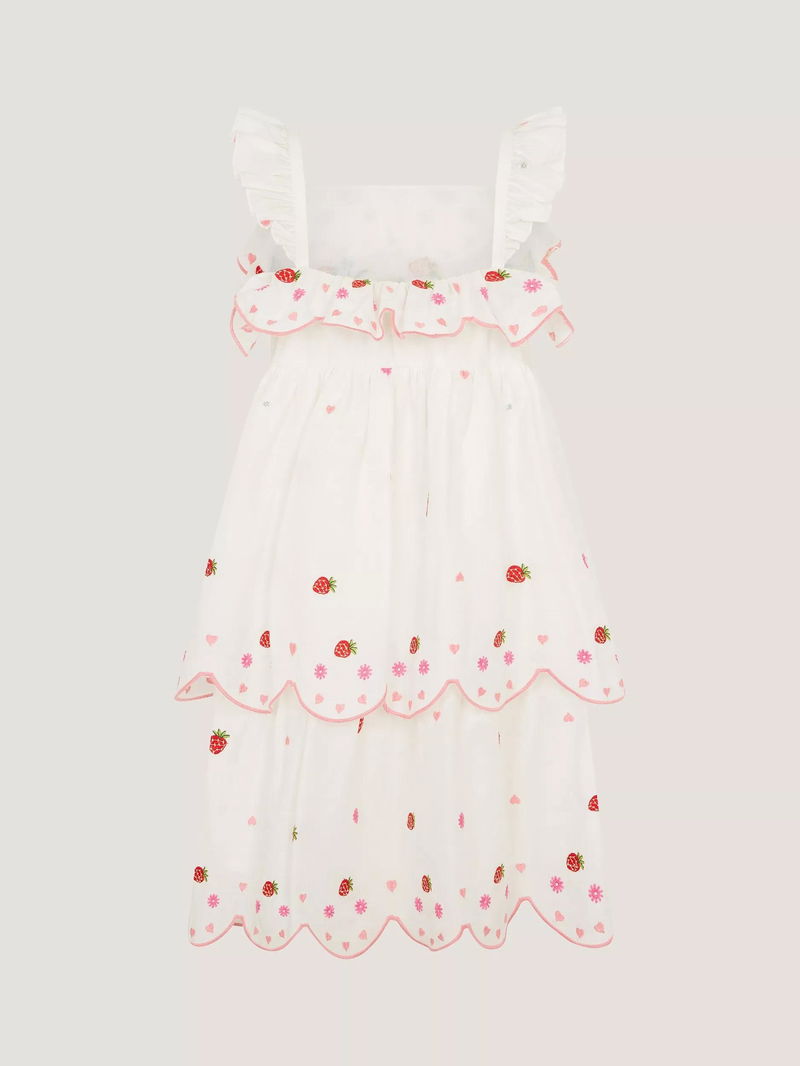 Kids' Cotton Strawberry Tiered Dress, Ivory