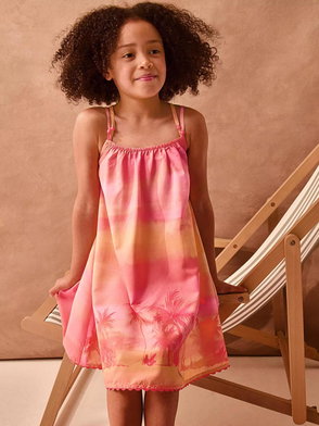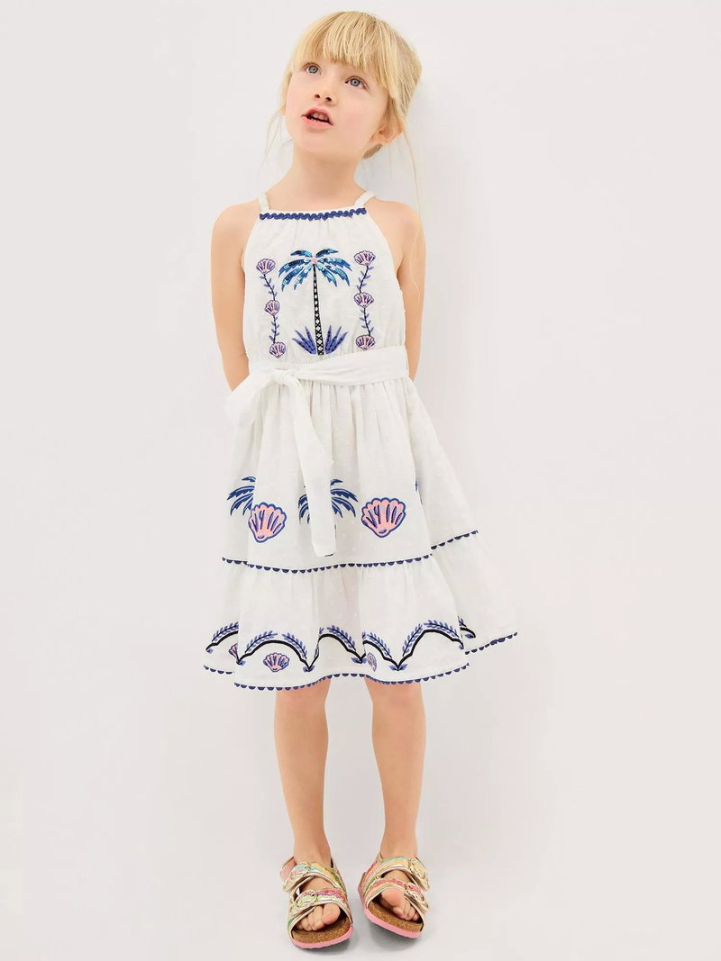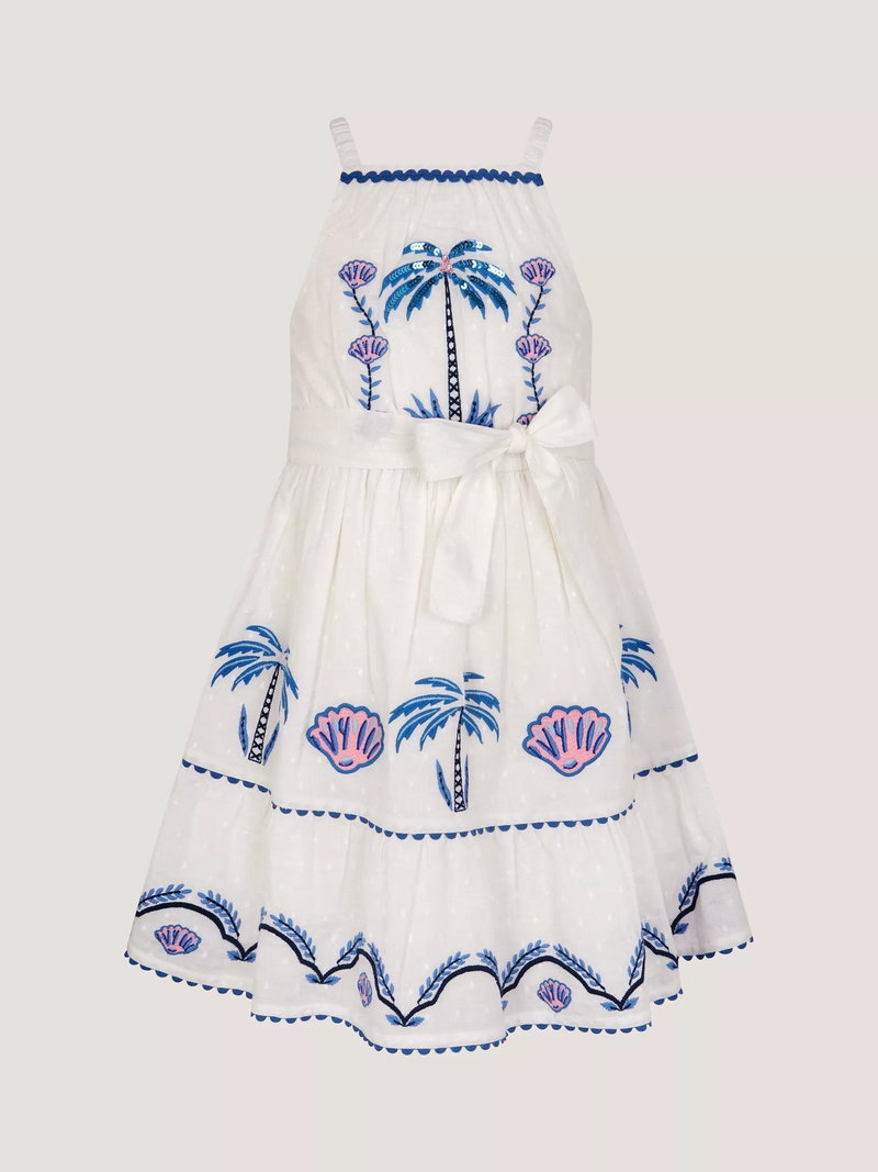 Kids' Embroidered Shell And Palm Dress, Ivory