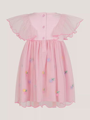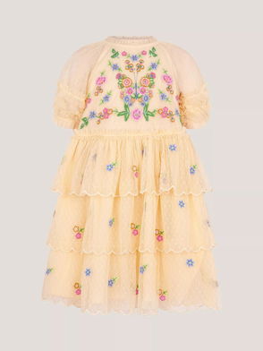Kids' Floral Embroidered Floral Tulle Tier Dress, Blue