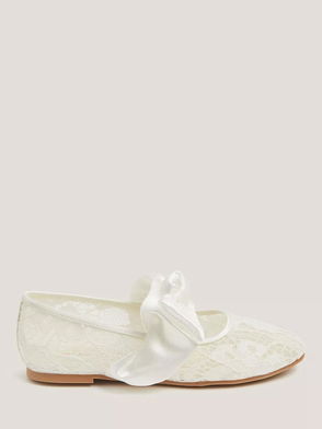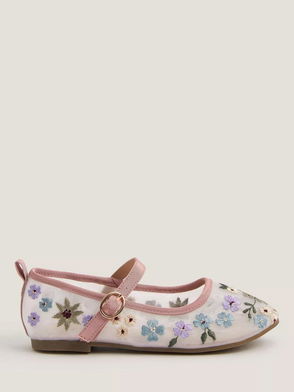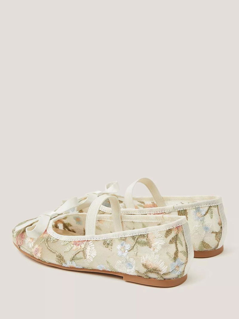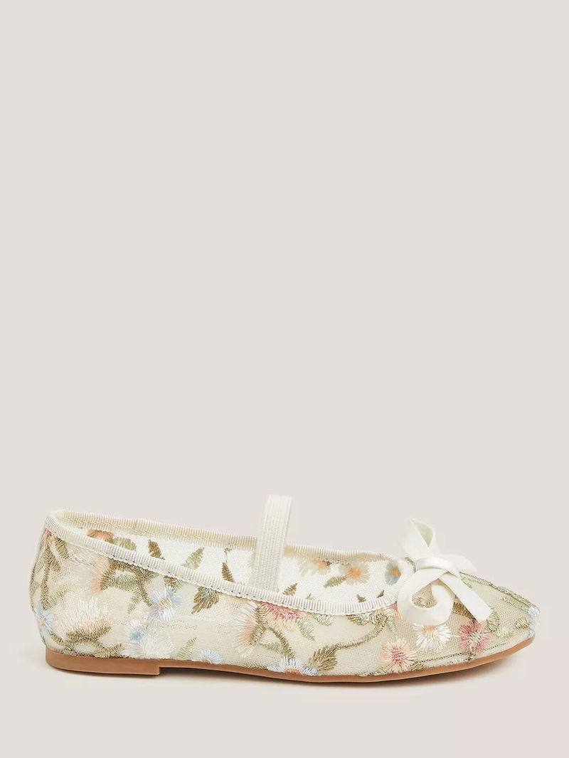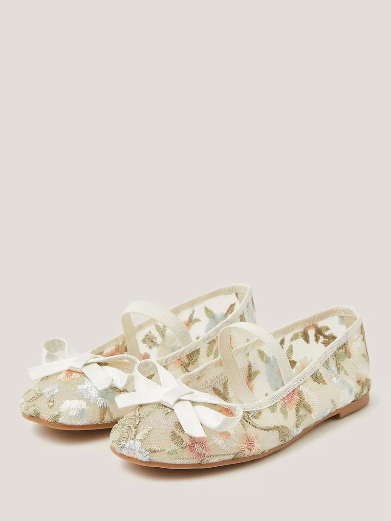 Kids' Floral Embroidered Mesh Ballet Flats, Ivory