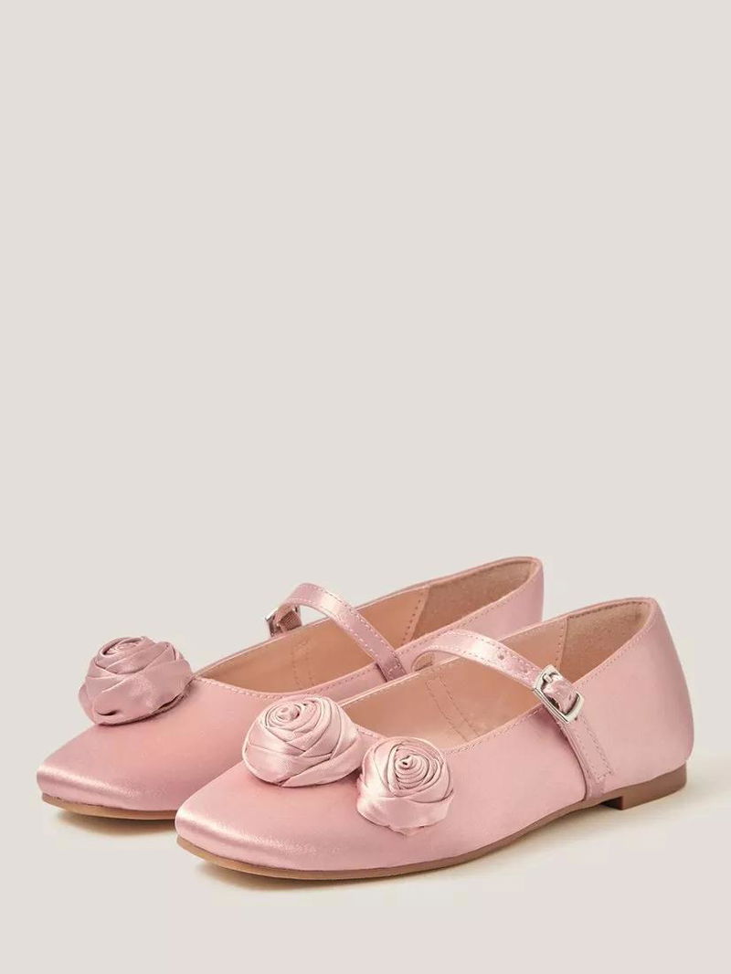 Kids' Rosette Satin Ballet Flats, Pink