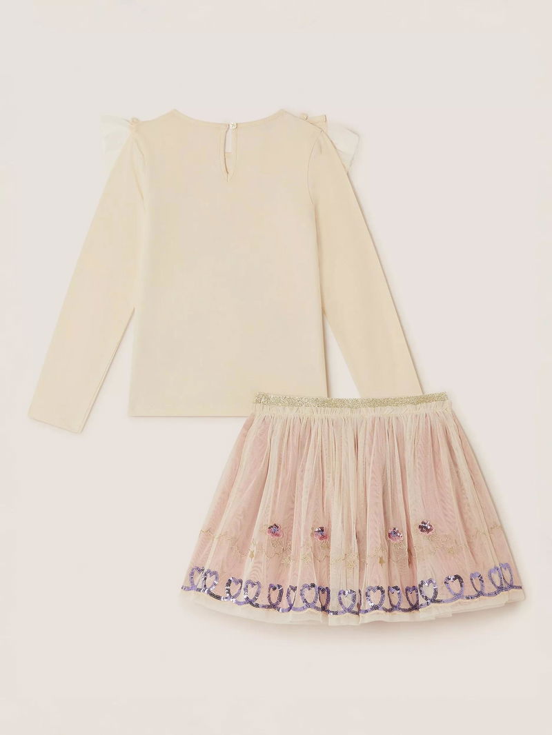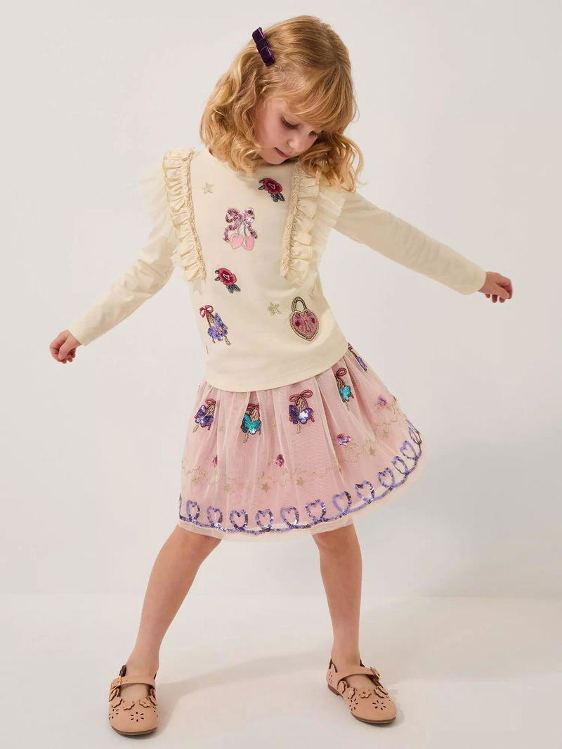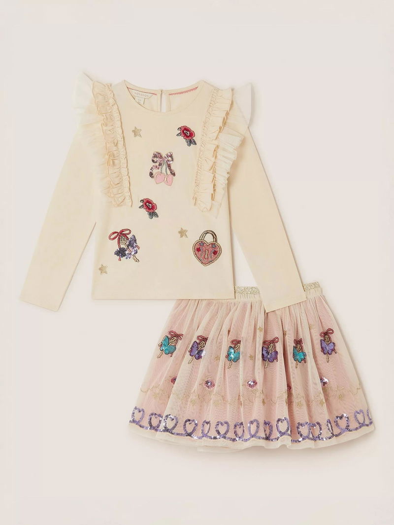 Kids' Ruffle Top & Embellished Skirt Set, Ivory