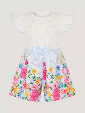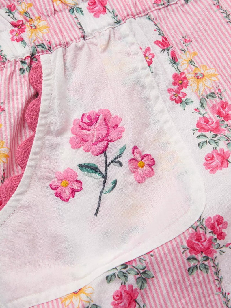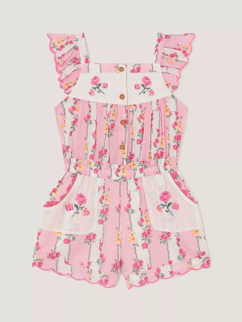 Kids' Scallop Trim Floral Stripe Playsuit, Pink