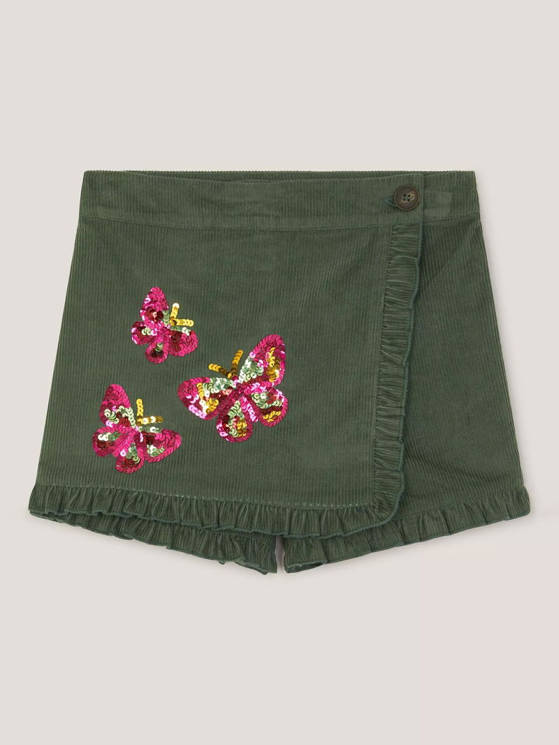 Kids' Sequin Butterfly Corduroy Skort, Green
