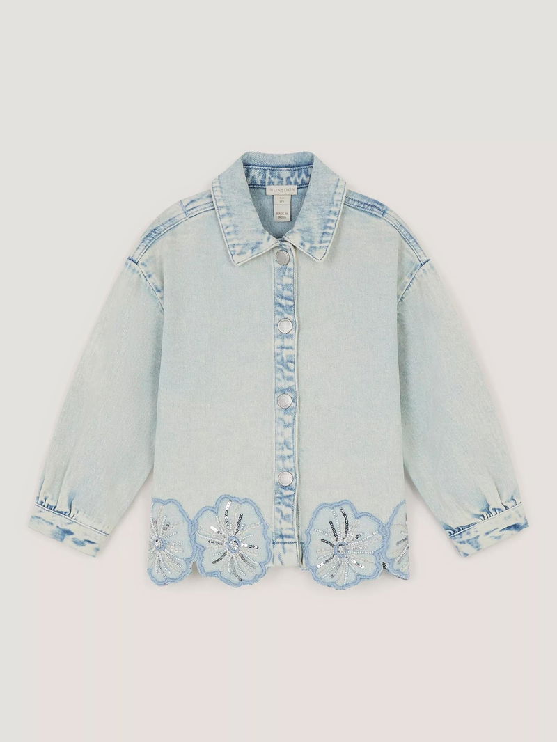 Kids' Sequin Flower Denim Jacket, Light Blue