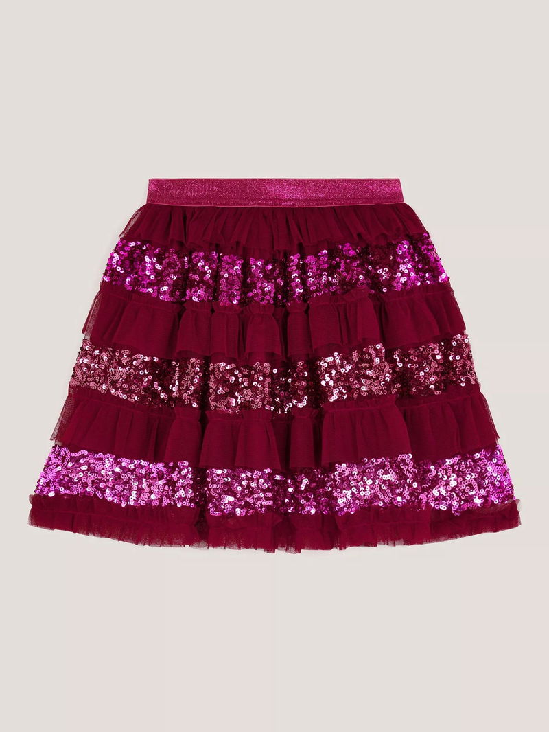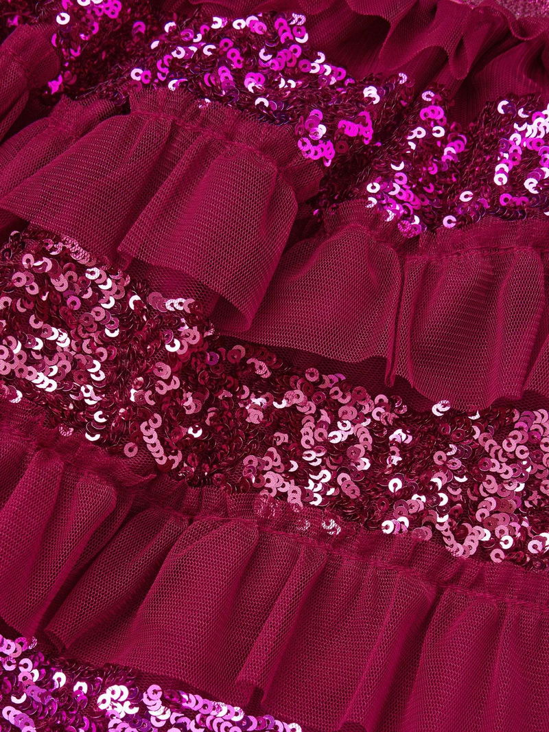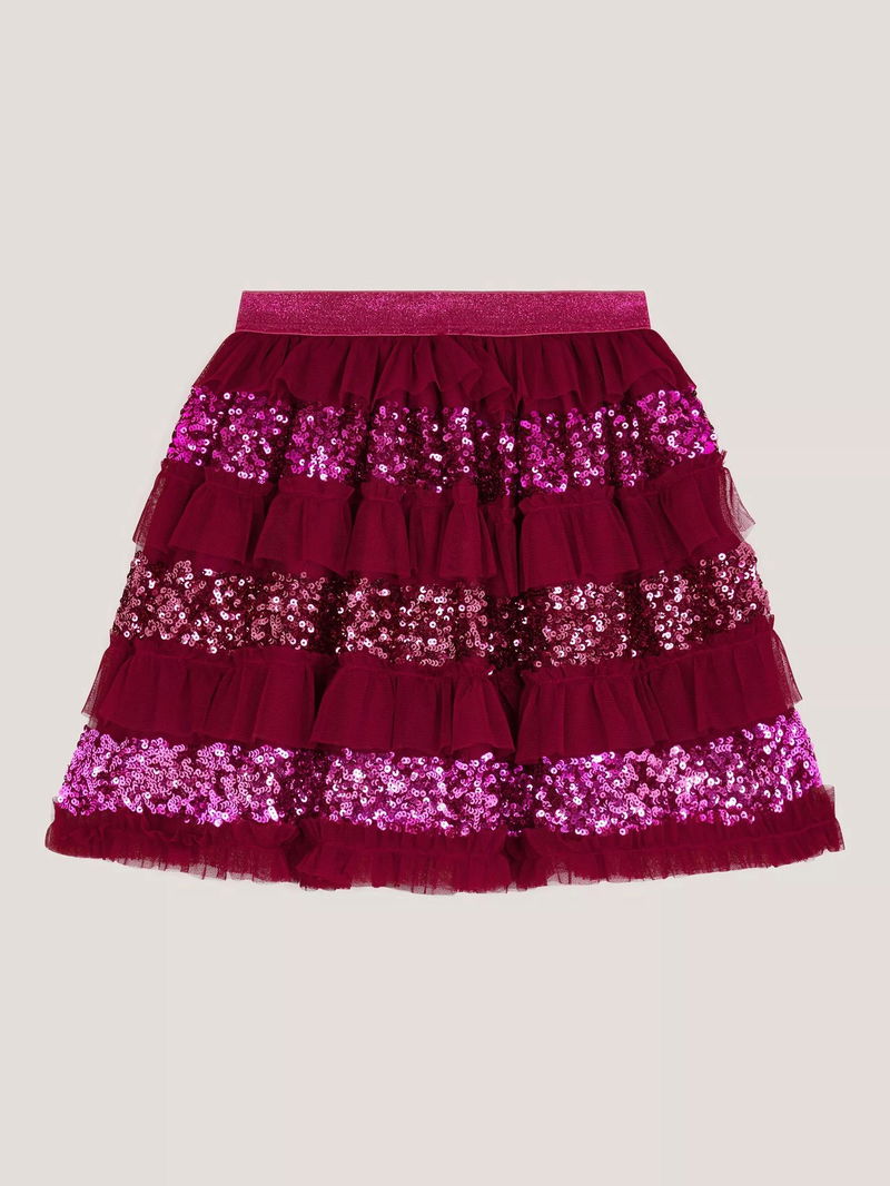 Kids' Sequin Ruffle Disco Skirt, Red