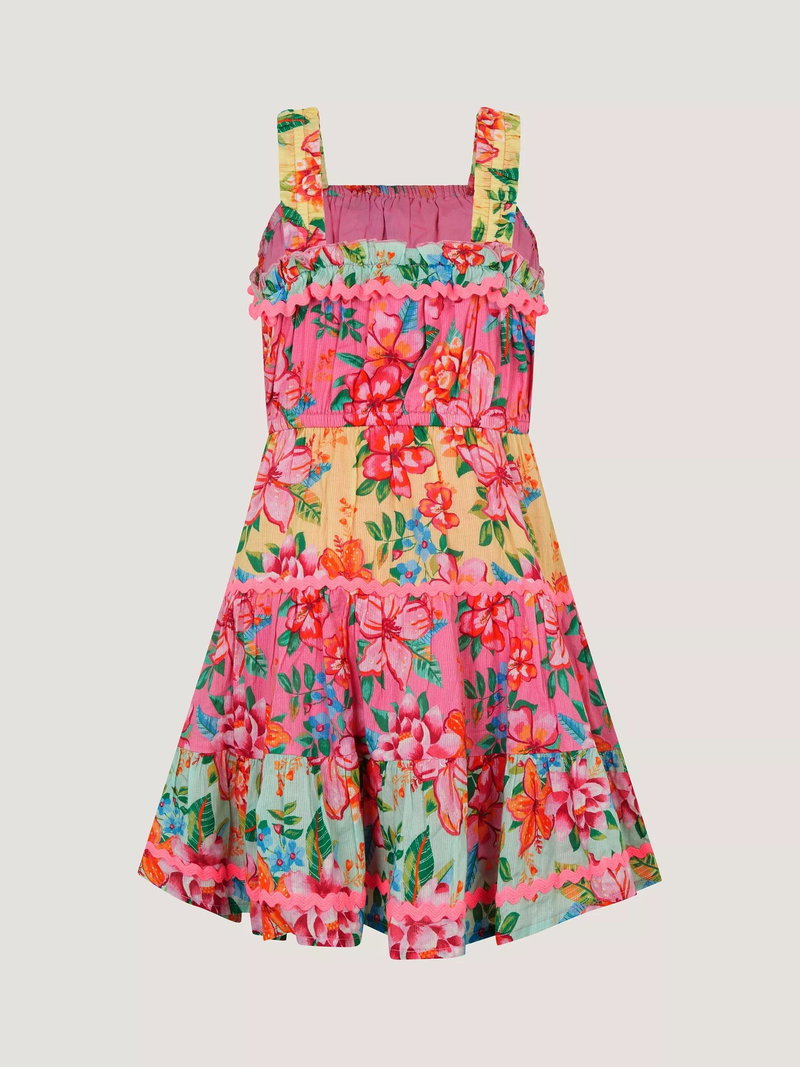 Kids' Tropical Flower Print Scallop Trim Dress, Pink