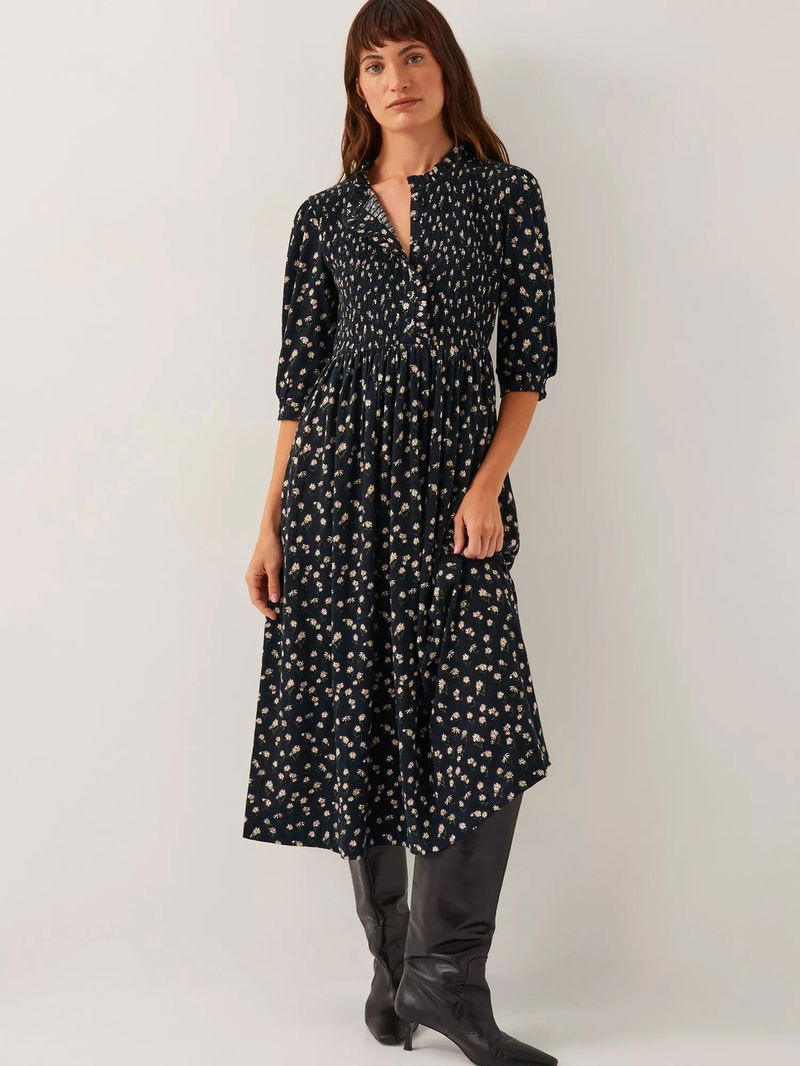 Entirely flattering with its A-line shape, this mid-length dress from Monsoon is stitched together from a blend imbued with cotton. With a fuss-free button neckline and elbow length sleeves, this style proves that florals are for all year round.