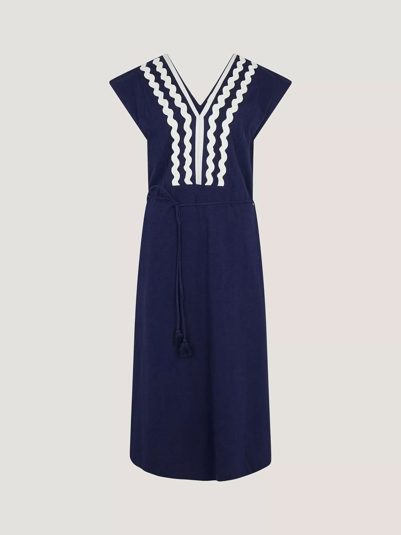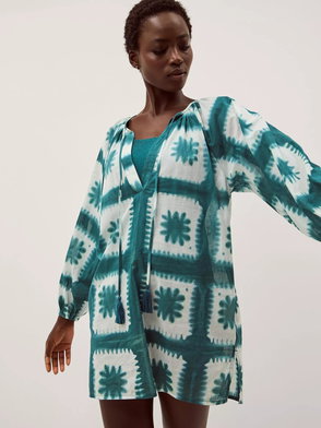 Longline kaftan with eye catching wavy embroidery- perfect for beach to bar.