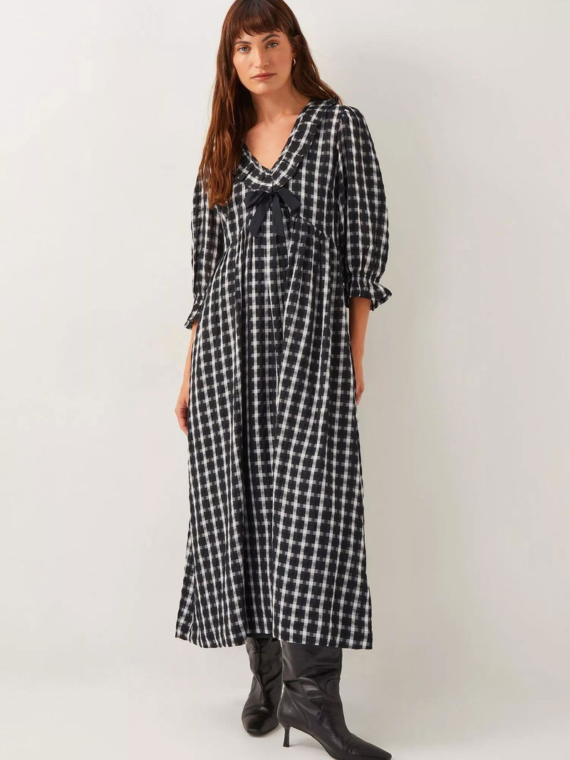 Designed in a fuss-free A-line style with a cute bow to the front, this midi dress from Monsoon is made from a liquid-like viscose blend. With a fuss-free but smart v-neckline and full-length sleeves, this style provides preppy and iconic appeal with its gingham design.