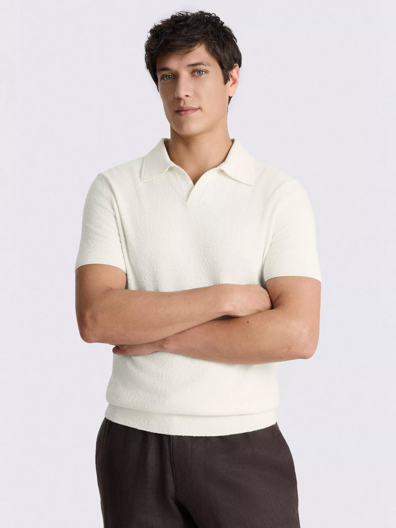Bouclé Cotton Blend Skipper Polo Shirt