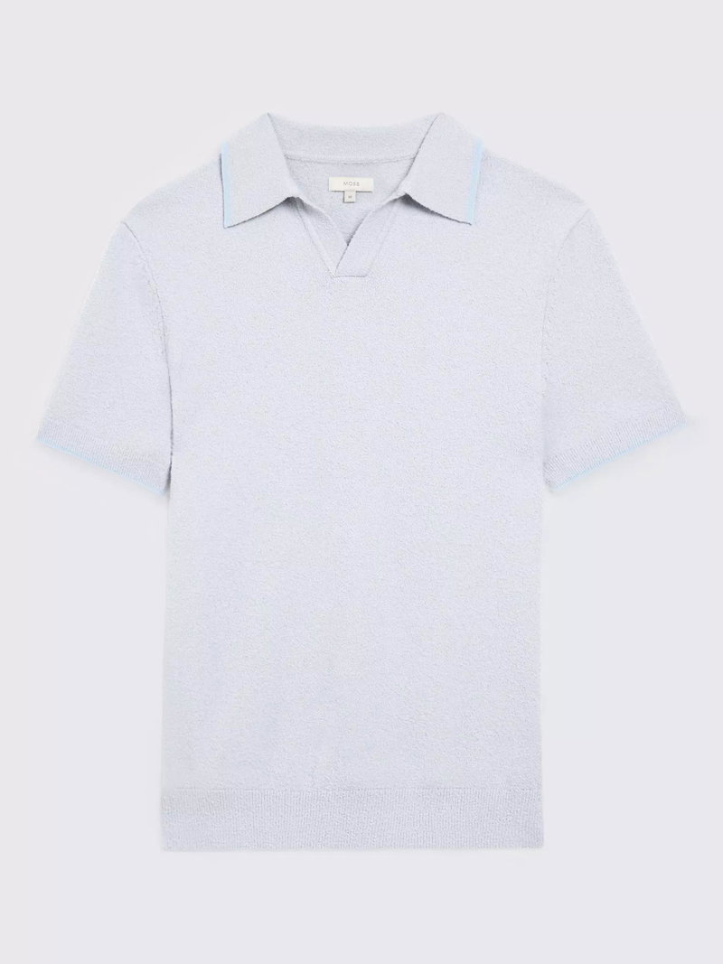 Made in cotton-rich yarn with a looped bouclé structure, Moss's short-sleeved polo has a clean skipper collar. Team it with chinos or tailored shorts for an easy summertime outfit.