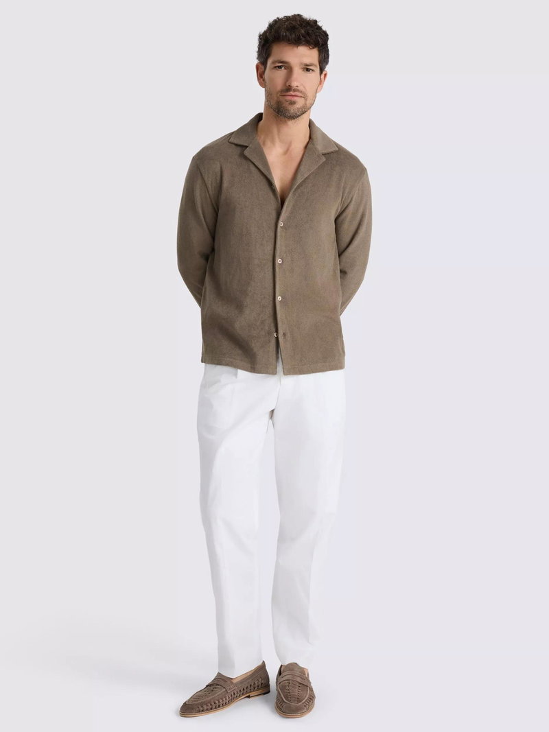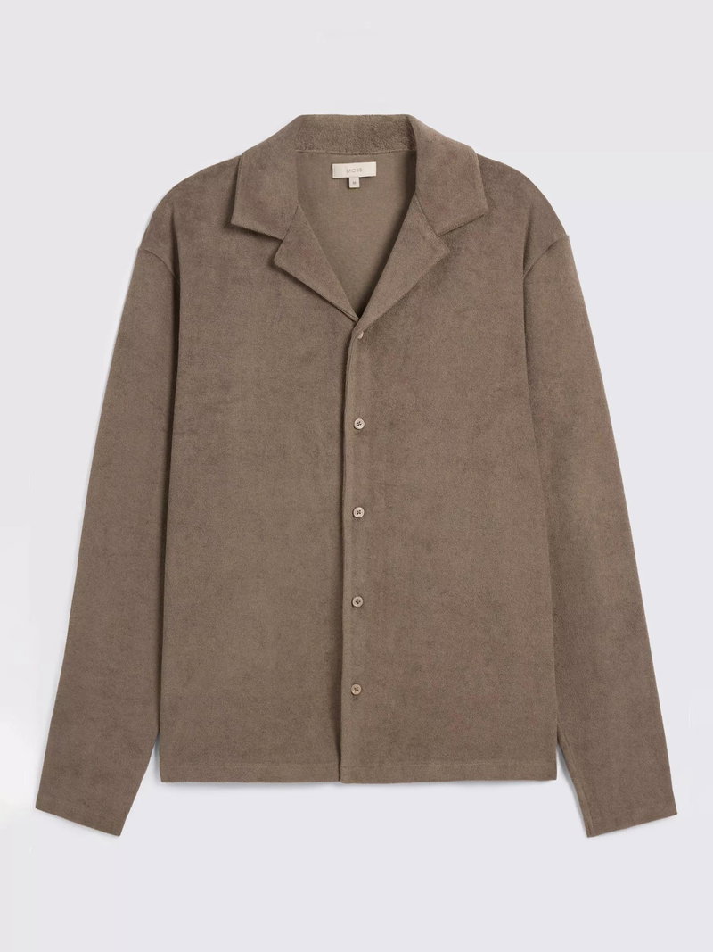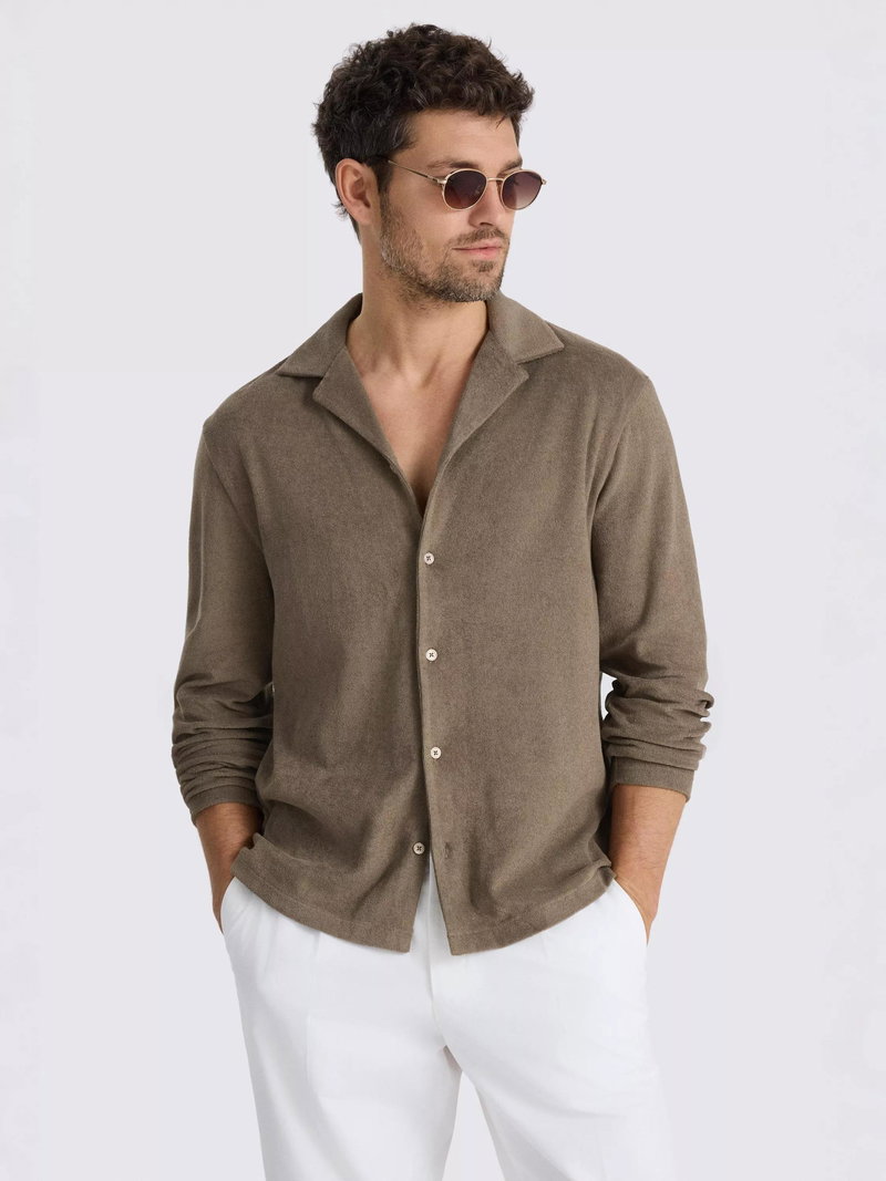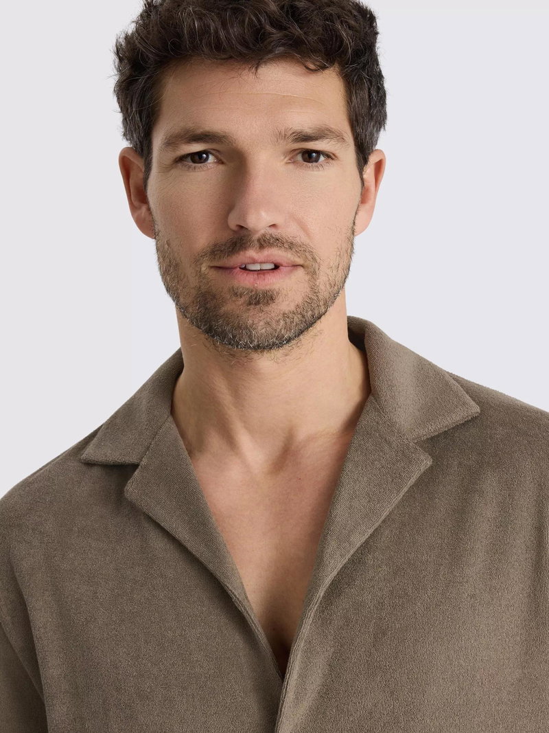 Relaxed button through short sleeve shirt made from cotton towelling for casual comfort.
