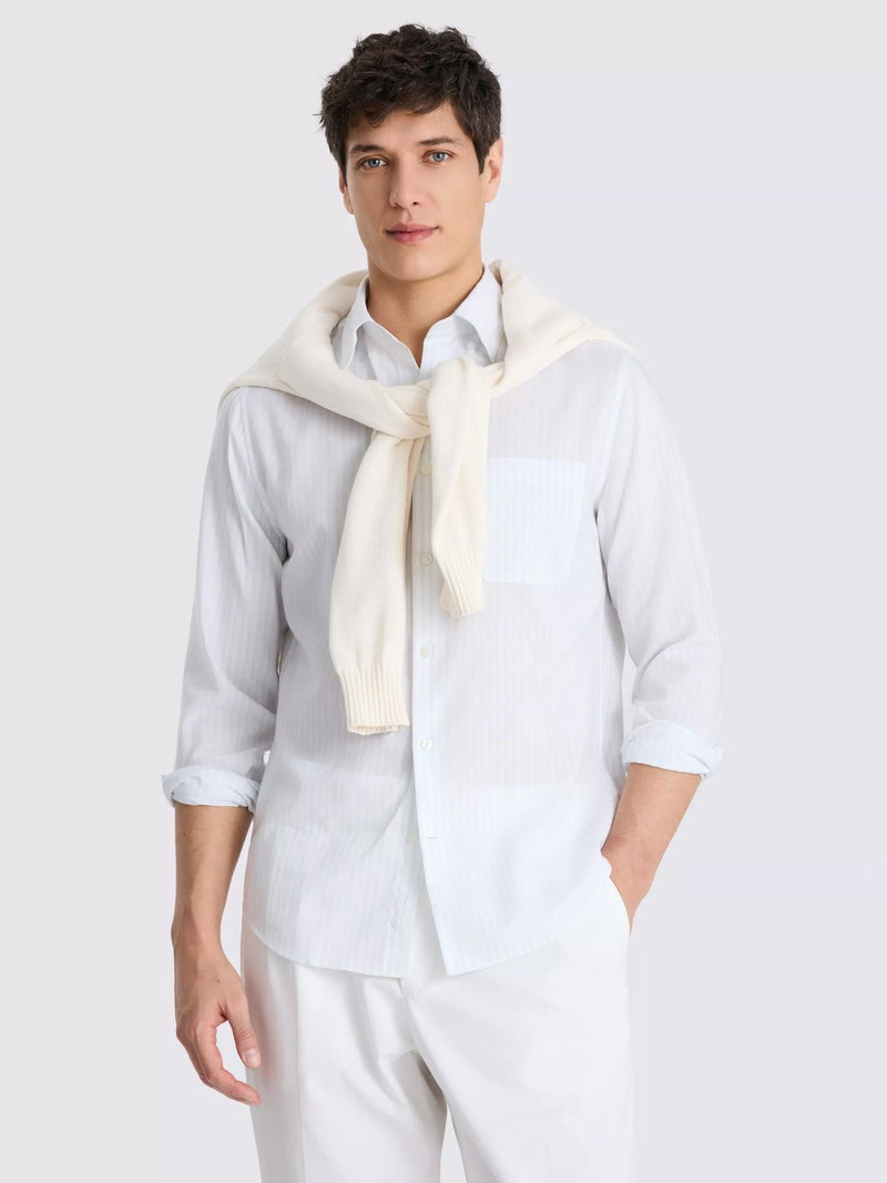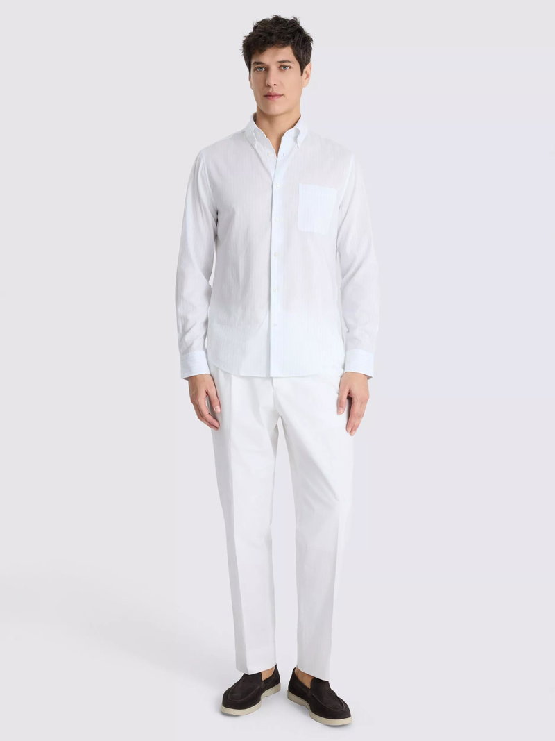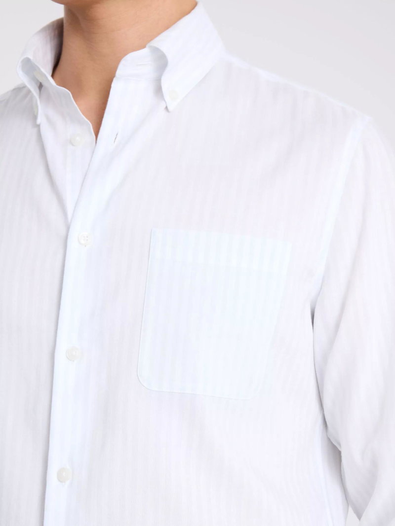 Cotton Blend Regular Fit Stripe Lightweight Oxford Shirt, Blue