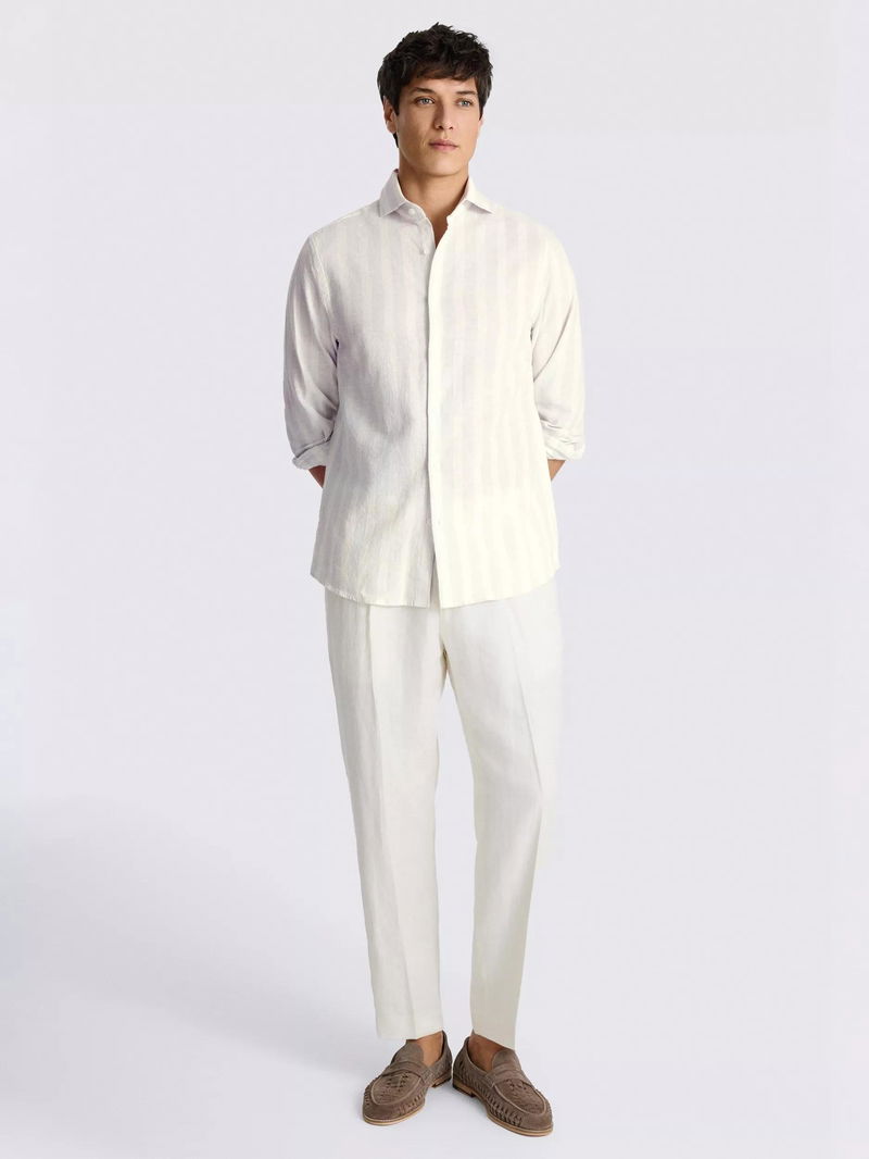 Cotton Linen Blend Wide Stripe Shirt, Pale Blue/Cream