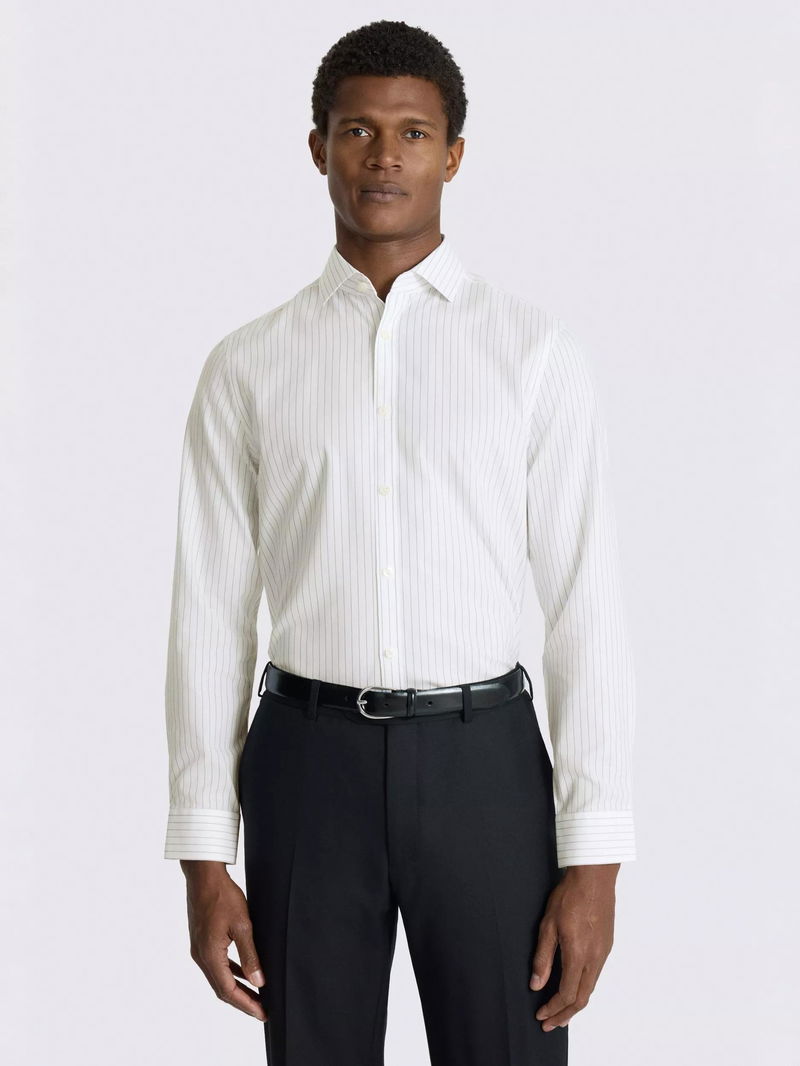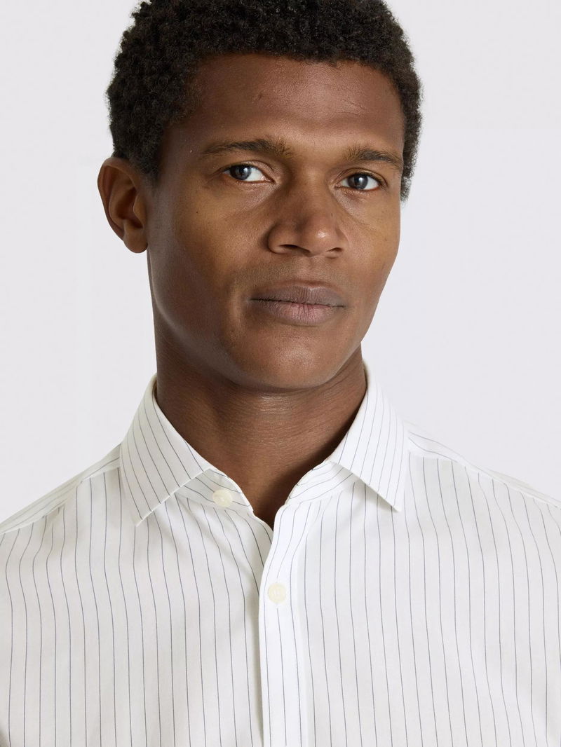 Cotton Slim Fit Wide Stripe Shirt, White