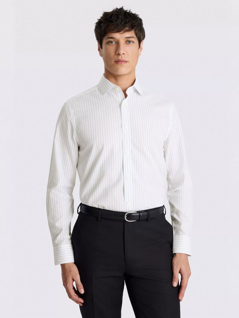Cotton Tailored Fit Long Sleeve Shirt, White