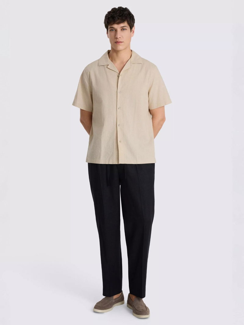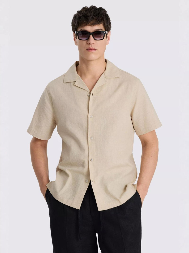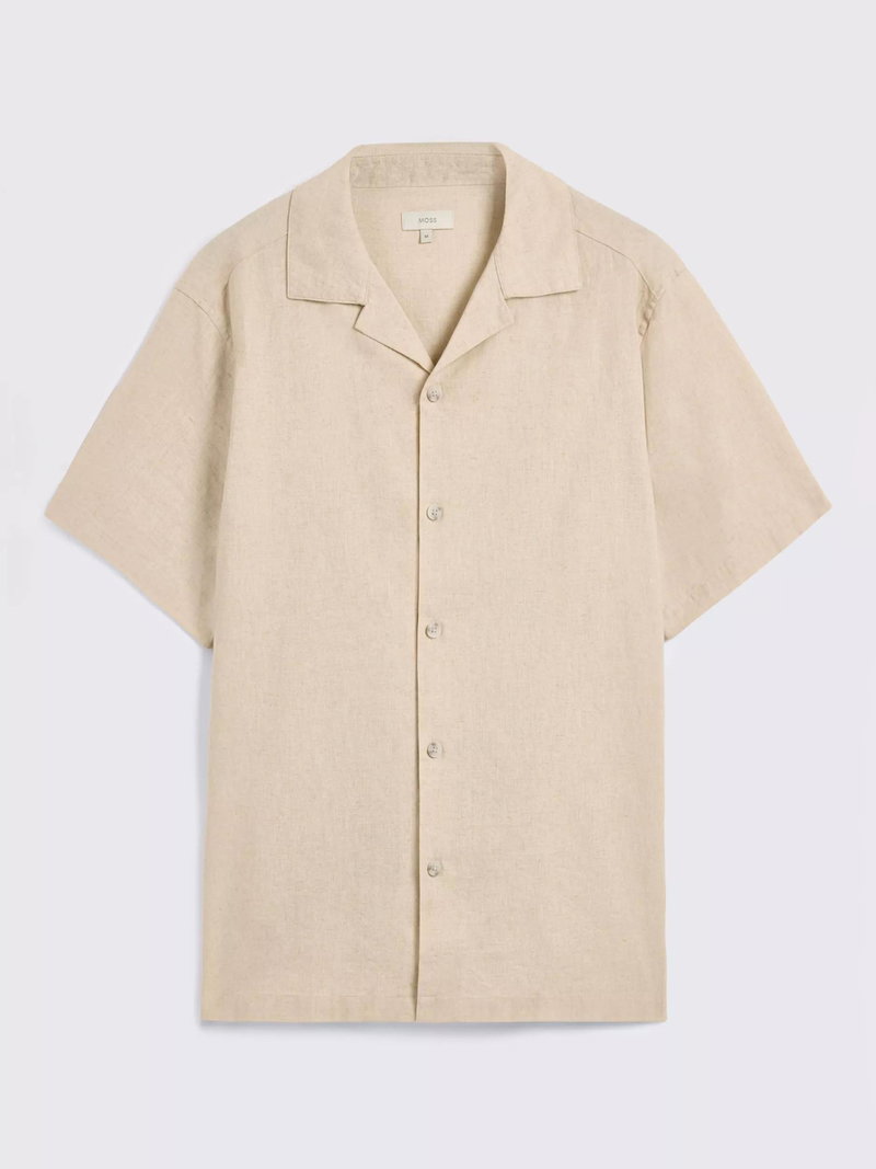 Perfect for wearing solo or layering on cooler days, this short-sleeved shirt has a neutral tone that couldn't be simpler to style. Moss have chosen a linen-cotton blend that's light and breathable, washing it to deliver a relaxed, lived-in look from day one.